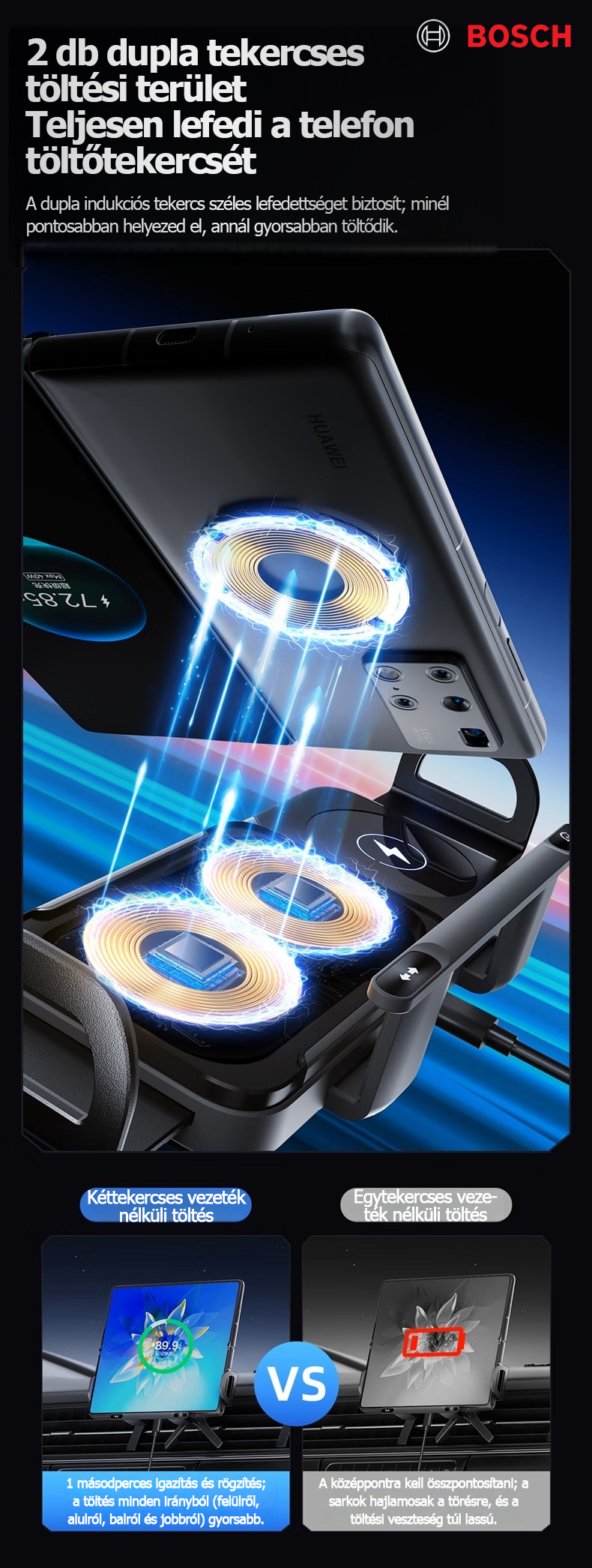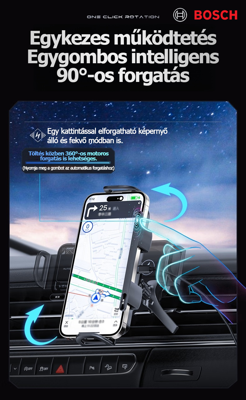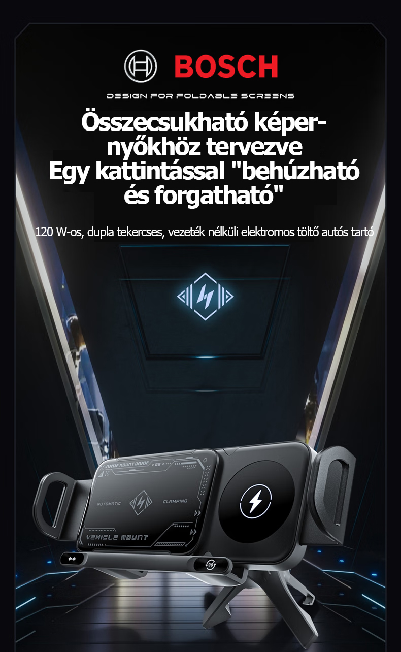 🚀 A BOSCH bemutatta a 3 az 1-ben autós tartót automatikus forgatással · Kompatibilis a Samsunggal és más okostelefonokkal, összecsukható telefonokkal és táblagépekkel