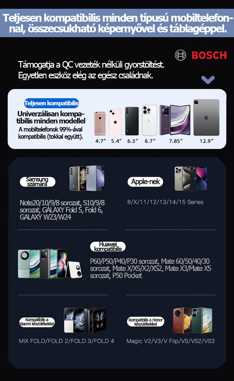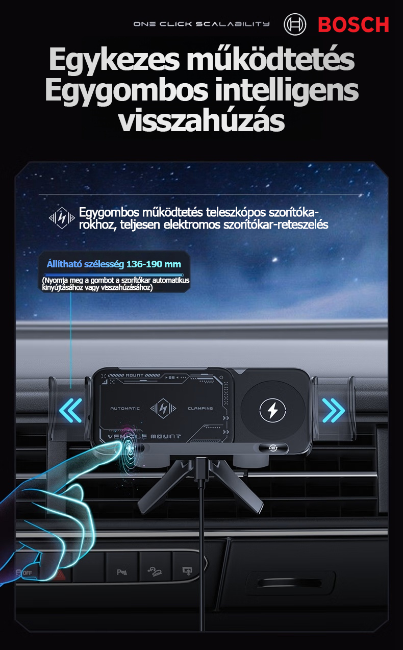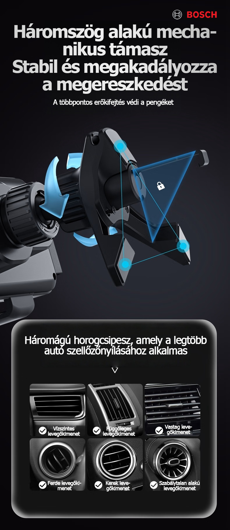 🚀 A BOSCH bemutatta a 3 az 1-ben autós tartót automatikus forgatással · Kompatibilis a Samsunggal és más okostelefonokkal, összecsukható telefonokkal és táblagépekkel