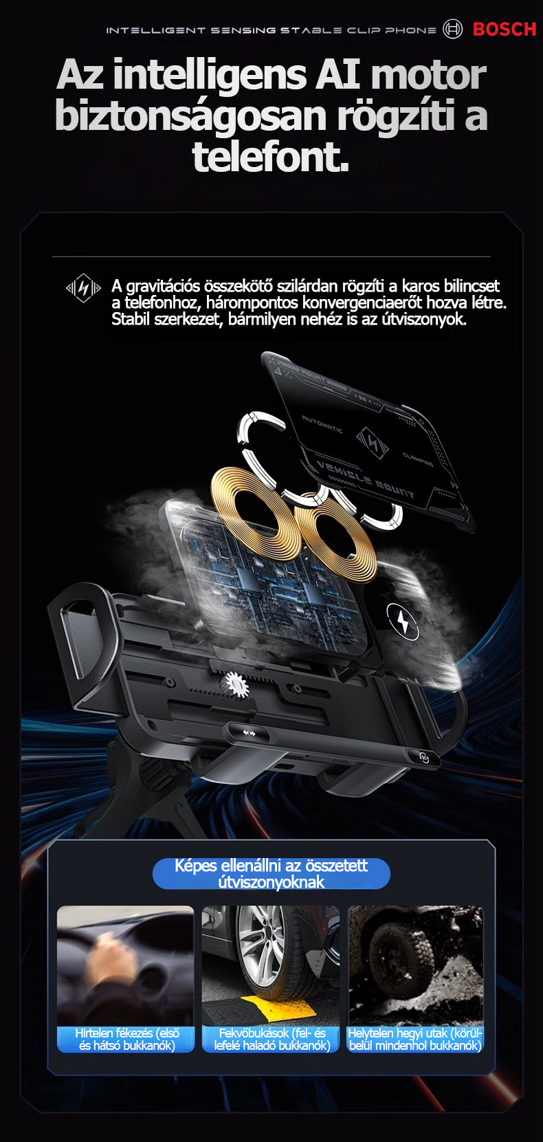 🧲 Stabil rögzítés és automatikus teleszkópos karok · Pontos rögzítés még egyenetlen utakon is