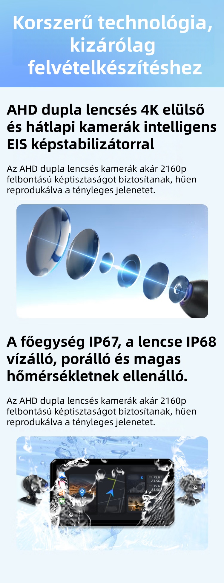 Felvétel az elülső és hátsó HD kameráról