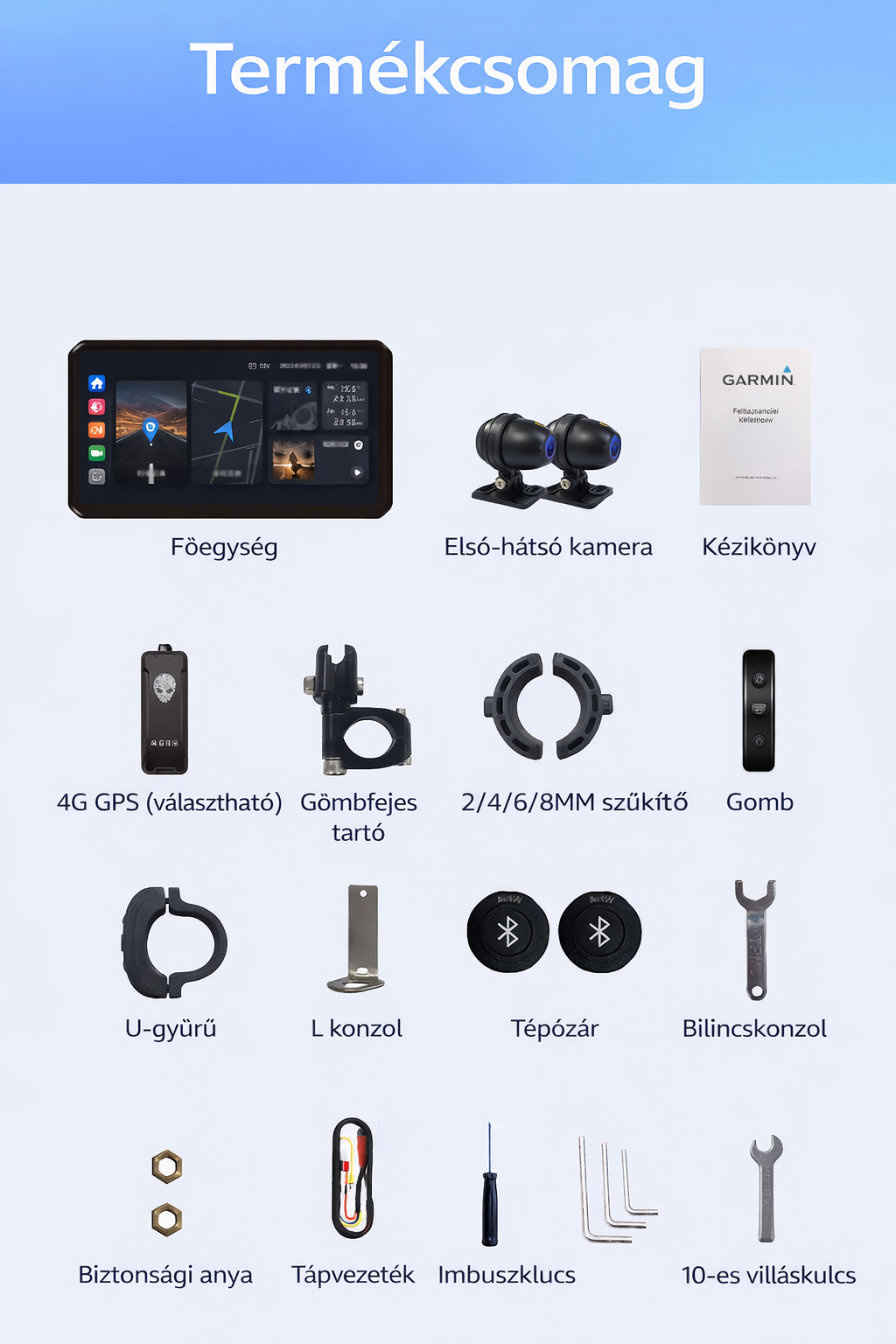 A fejlett CarPlay navigációval és nagy teljesítményű motorkerékpár-menetrögzítő rendszerrel felszerelt Garmin intelligens fedélzeti egységek valós idejű útvonaltervezést, stabil vezetési rögzítést és átfogó biztonsági támogatást nyújtanak minden utazás során.