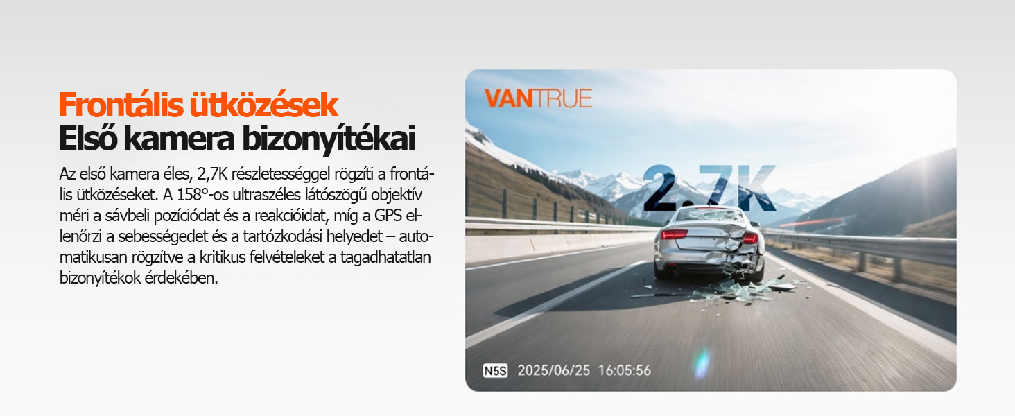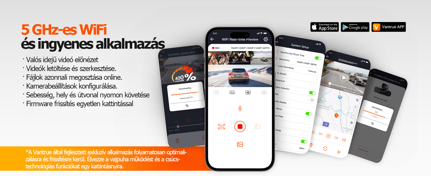 【5 GHz-es WiFi és GPS és OTA frissítés】 Tapasztalja meg a 4-szer gyorsabb adatátviteli sebességet és a pontosabb pozicionálást az 5 GHz-es WiFi-vel és a kettős rendszerű GPS-szel. Ingyenes Vantrue alkalmazásunkkal könnyedén módosíthatja a beállításokat, megtekintheti/szerkesztheti a videókat, online megoszthatja a videoklipeket és nyomon követheti a GPS-adatokat. Készítsen részletes kilométer-jelentéseket egyetlen kattintással – ez kulcsfontosságú bizonyíték a biztosítási kárigények és a közúti balesetek esetén. Szerezze be az OTA firmware-frissítéseket közvetlenül az alkalmazáson keresztül, hogy a fedélzeti kamerája mindig a legjobb teljesítményt nyújtsa.