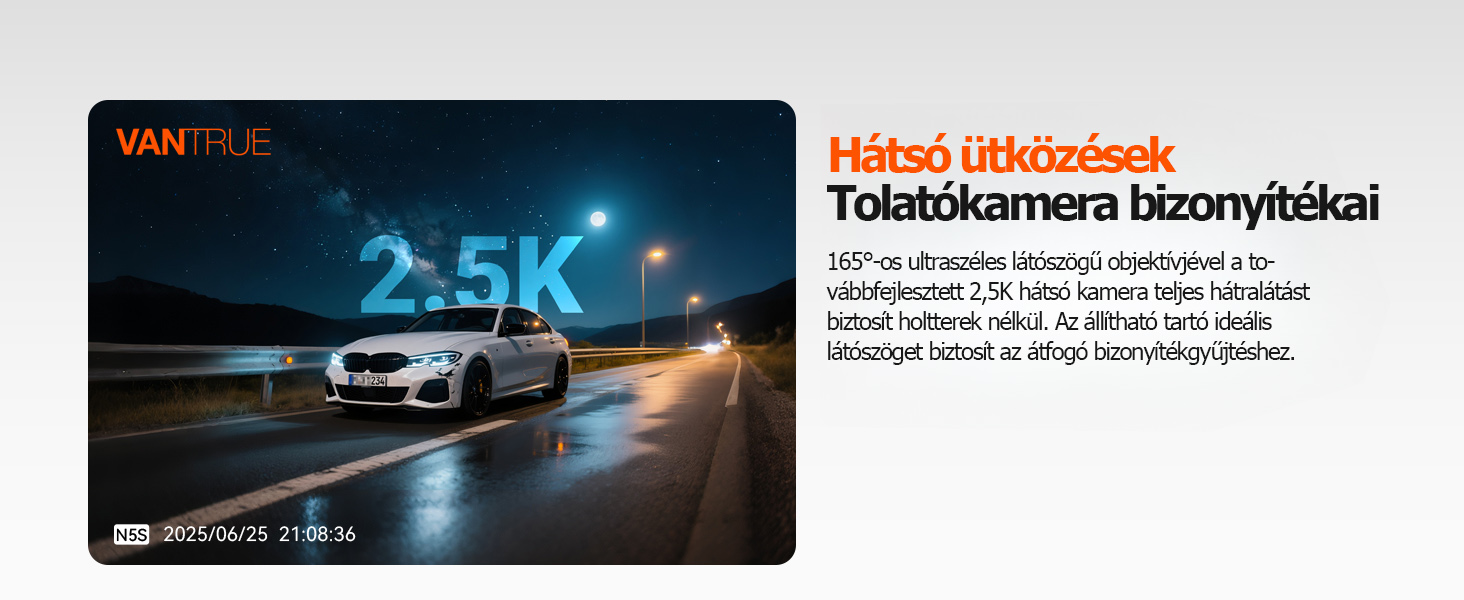 【Következő generációs 2,5K-s tolatókamera】 2,5K-s tolatókamerank csúcskategóriás IMX675 érzékelőt használ, és támogatja a HDR feldolgozást, így 1,5-szeres képtisztaságot biztosít a hagyományos 1080p-s rendszerekhez képest, így kulcsfontosságú bizonyítékot szolgáltatva a hátulról történő ütközések esetén. Ezenkívül egy dedikált hátsó üléses kamerát is kínálunk, amely IMX662 érzékelővel van felszerelve, nagyobb fényérzékenységgel, és minden sarokból tiszta részleteket rögzít, beleértve a csomagtartót, a hátsó üléseket és az oldalsó ablakokat is. Ez ideális a 360°-os körpanorámás rendszerünkkel való párosításhoz, így gyermekeket, háziállatokat és értéktárgyakat is megfigyelhet.