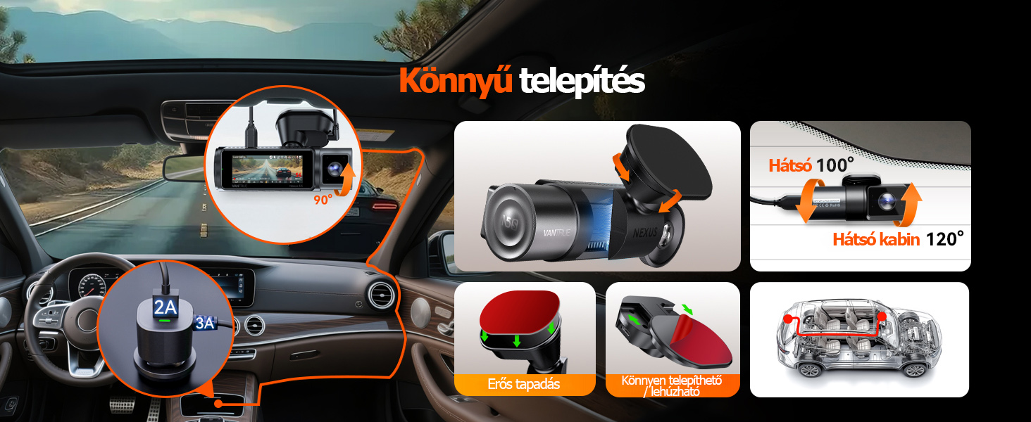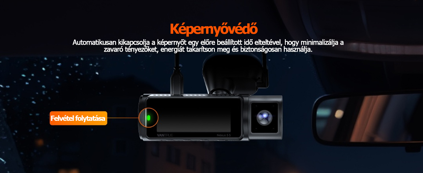 【Könnyű telepítés és kezelés】A továbbfejlesztett öntapadós konzolunk biztonságos illeszkedést biztosít, miközben lehetővé teszi a könnyű eltávolítást és megakadályozza a kábelek összegubancolódását. Az elülső kamera gömbcsuklós konzolt használ, és mind a belső, mind a hátsó kamera teljesen állítható a tökéletes pozicionálás érdekében. Több nyelvet támogat, többek között angol, francia, spanyol, magyar, cseh és kínai nyelvet. Az automatikus LCD-képernyő kikapcsoló funkciója csökkenti a vezető figyelmének elterelését és biztosítja a vezetés biztonságát. Az egyérintéses felvételvezérlés védi az Ön adatait.
