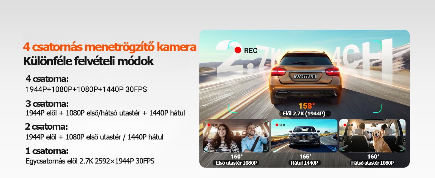 【4 csatornás 360°-os körkörös lefedettség】Fejlett 4 csatornás 360°-os autós kameránk 360°-os körkörös védelmet nyújt, kiküszöbölve a holttereket az úton és a jármű belsejében. Ez az autós kamera nagy teljesítményű, kétmagos processzorral van felszerelve, támogatja a 2.7K+1080P+1080P+1440P nagyfelbontású felvételt, és rugalmas felvételi módokat kínál (1 csatorna/2 csatorna/3 csatorna/4 csatorna), hogy alkalmazkodjon a különböző vezetési helyzetekhez. Akár napi ingázásról, akár hosszú távú utazásról van szó, ez a többfunkciós megfigyelési megoldás könnyedén védi a vezetési biztonságát és a törvényes jogait.