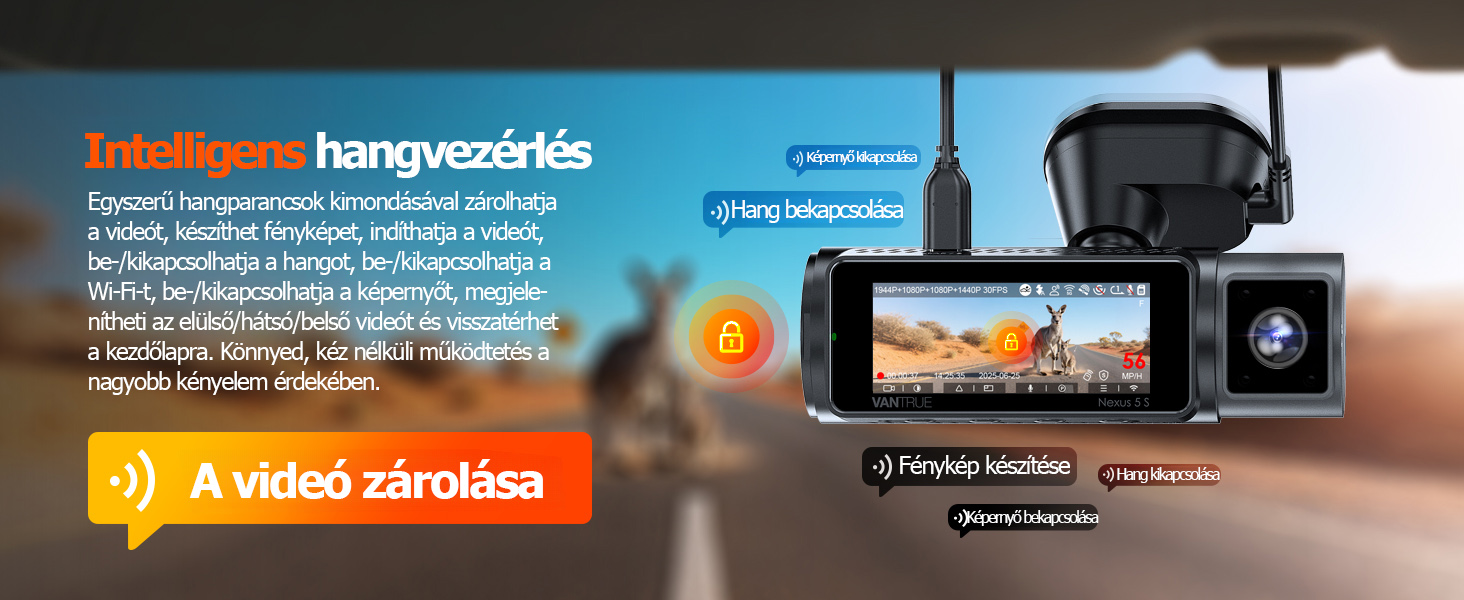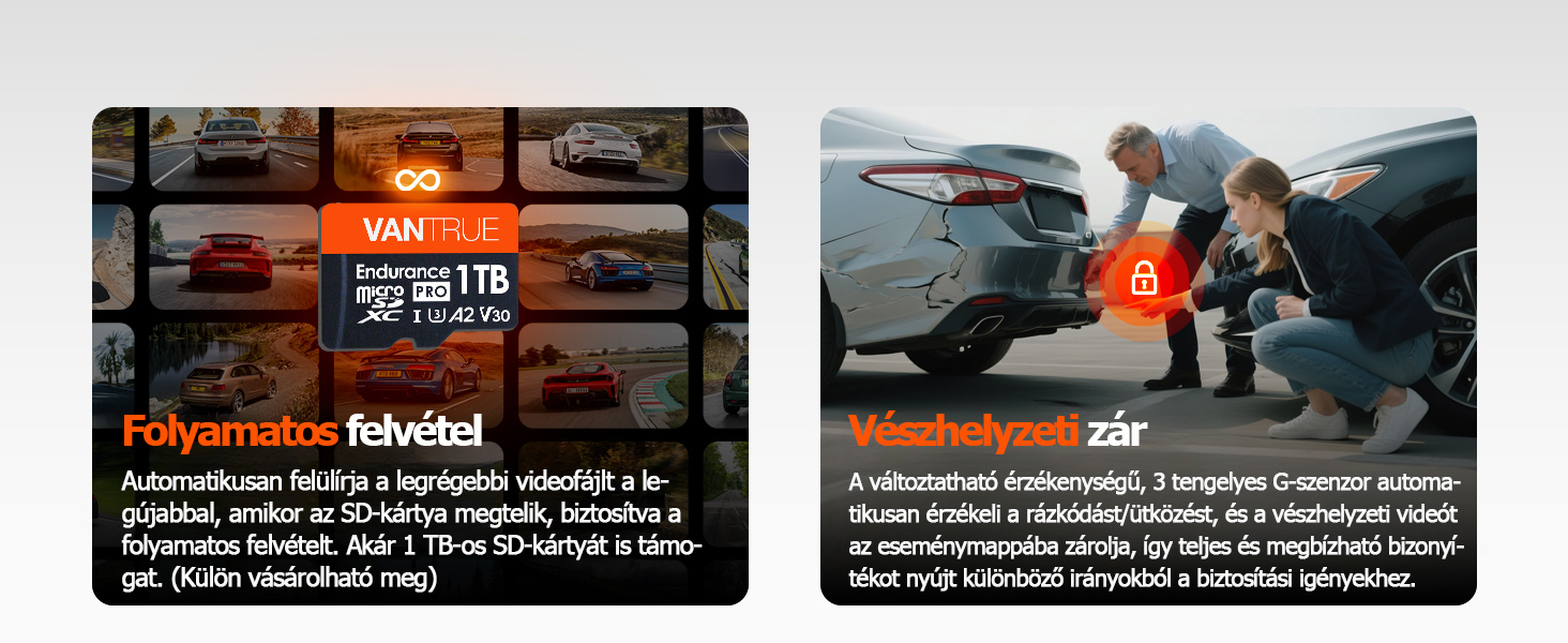 【Intelligens hangvezérlés és akár 1 TB-os memóriakártyák támogatása】A fejlett többnyelvű hangutasításokkal (angol, orosz, kínai, francia és japán) az útra koncentrálhatsz. Egyszerűen használd a hangodat videók mentéséhez, fényképek készítéséhez, a hang be- és kikapcsolásához, a képernyő be- és kikapcsolásához és sok máshoz – mindezt anélkül, hogy levenned a kezed a kormányról. Tapasztald meg a valódi kézhasználat nélküli kényelmet és a biztonságosabb vezetést. Ez a fedélzeti kamera akár 1 TB-os microSD-kártyákkal kompatibilis (külön megvásárolható), és akár 40 órányi 4 csatornás videót is képes folyamatosan rögzíteni.
