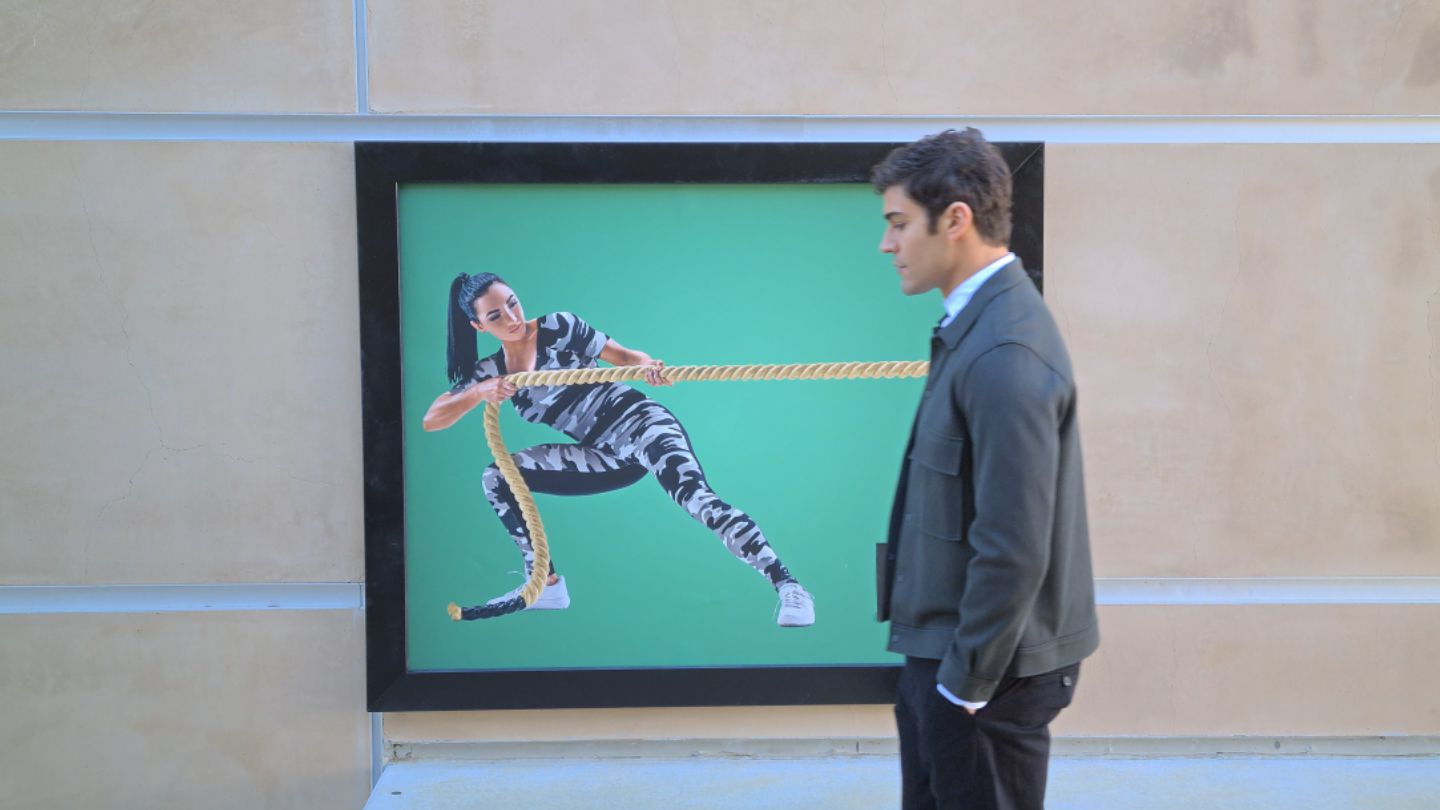 Galaxy S20 plus készüléken Éjszakai módban készült fotók. A BTS egy gyengén megvilágított folyosón áll, kezében világító rudakkal és neonfényekkel megvilágított tárgyakkal, például gitárral, klarinéttal, kosárlabdával, napszemüveggel és egyebekkel. Az Éjszakai mód kikapcsolt állapotában készült fotón látszanak a zenekar tagjainak körvonalai, de leginkább a világító rudak és a neonfényű tárgyak. Az Éjszakai mód bekapcsolt állapotában készült fotón a zenekar arca és öltözéke sokkal tisztább és színesebb.