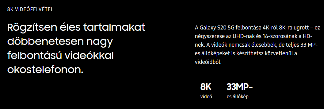 Bemutatkozik a Galaxy S20. Forradalmi 8K videofelvételével, 5G kapcsolatával és akár 100-szoros Space Zoomjával átalakítja azt, ahogyan megörökíted és megosztod az életed. Olyan fotózási lehetőségek, amelyekről korábban álmodni sem mertél, most egy karnyújtásnyira vannak.